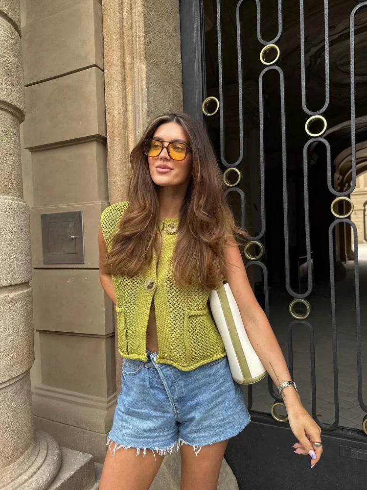 Onze Chiara Knit Cardigan is jouw nieuwe go-to voor een instant stijlvolle upgrade. Deze geweldige groene cardigan met prachtige gouden knopen is een absolute must-have voor je garderobe. Met zijn trendy ontwerp en opvallende details tilt het elke outfit naar een hoger niveau. Chiara kan zowel casual als chique gedragen worden, zo kan je het combineren met je favoriete jeans en sneakers of juist een zwarte pantalon en hakken voor een avondje uit!