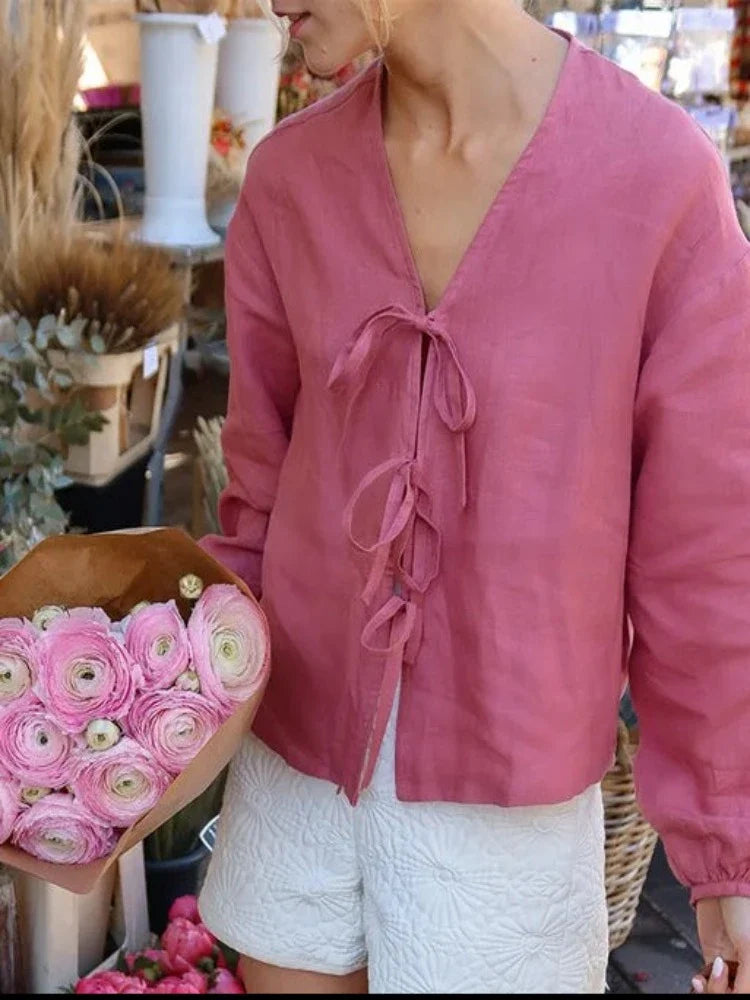 Cute but classy! Onze Ella Blouse is een absolute musthave dit seizoen. De blouse heeft een prachtig classy design en valt tegelijkertijd heel casual. Hiermee creëer je moeiteloos een fabulous look. Kenmerkend aan de blouse is de mooie v-hals en de leuke strik sluiting. Combineer de blouse met je favoriete jeans, een korte broek of rokje en je hebt de perfecte look voor de lente en zomer! En het leukste van allemaal, de Ella Blouse is verkrijgbaar in verschillende kleuren.