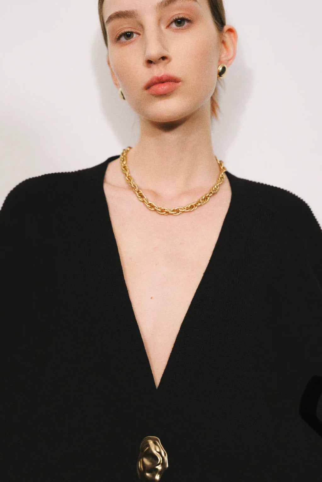 De Emma Knit Cardigan is alles wat je nodig hebt voor een instant upgrade van je garderobe. Met de mooie v-hals en de prachtige gouden knoop die het een luxe uitstraling geven is dit design absoluut onweerstaanbaar,. Deze details maken de cardigan echt uniek en tillen elke look naar een hoger niveau. Of je nu kiest voor een chique outfit met een satijnen lange rok voor de feestdagen of een meer casual vibe met jeans en sneakers, Emma past zich moeiteloos aan jouw stijl aan.