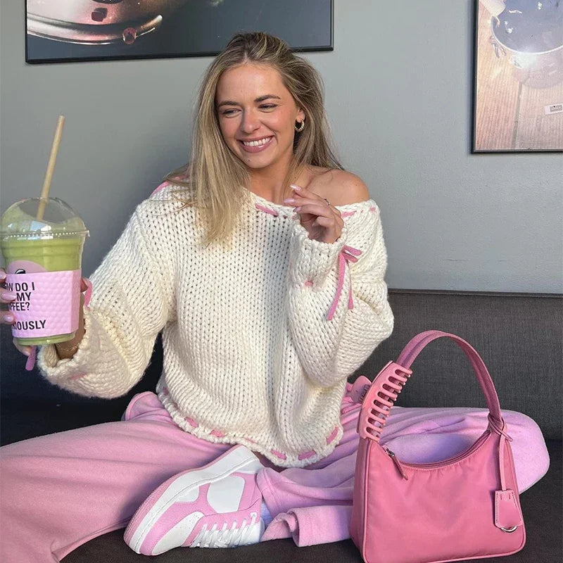 Cute, fabulous & comfy! Onze Rumi Knit Sweater is een absolute musthave dit seizoen. De sweater heeft een prachtig design en biedt tegelijkertijd een casual en écht comfortabele ervaring. Het zachte materiaal voelt heerlijk aan op de huid, waardoor je de Rumi Sweater niet meer uit wilt trekken. Kenmerkend aan deze sweater zijn de speelse strikdetails bij de mouwen en hals die direct opvallen. Combineer de sweater met je favoriete jeans, een rokje of korte broek voor een stijlvolle en toch super comfy outfit!