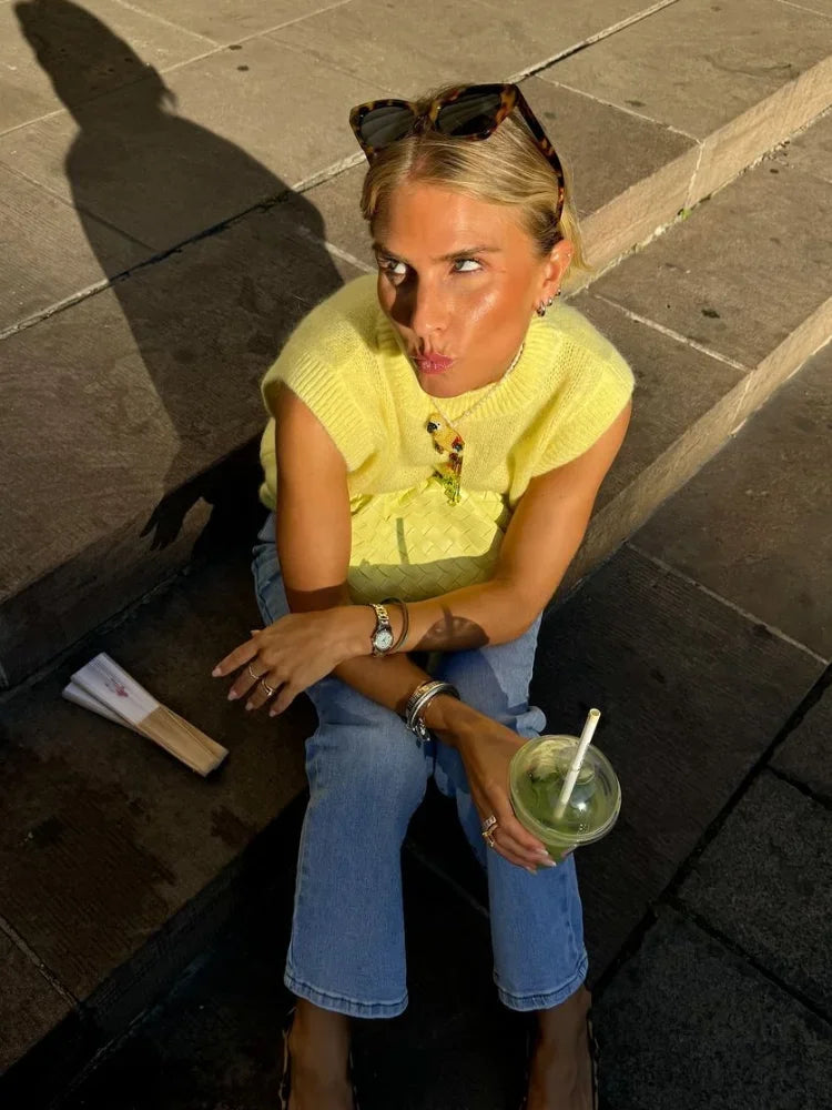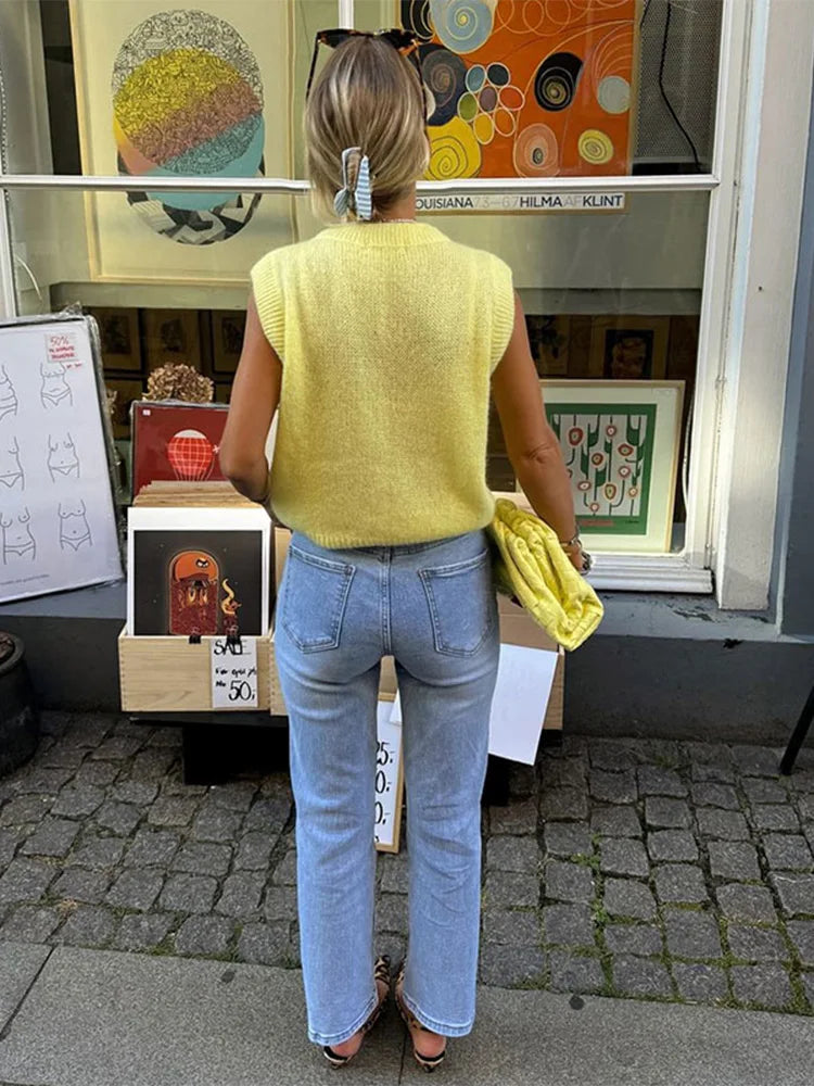 Make it cute & casual! De Vera Top is een hele fijne knit met een stylish en tijdloos design dat een speels en fabulous effect creëert. De Vera Top heeft een mooie, zachte gele kleur en valt eenvoudig te combineren. Kies ervoor om deze te dragen met bijvoorbeeld je favoriete jeans en sneakers voor de perfecte outfit voor een zomerse lunch, of juist met hakken voor een leuk etentje.